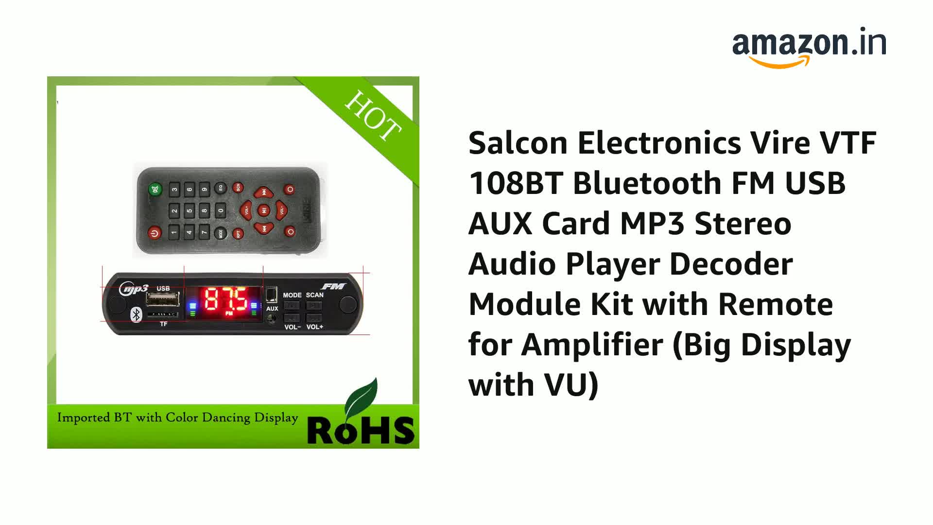 Salcon Electronics Vire Vtf 108bt Bluetooth Fm Usb Aux Card Mp3 Stereo Player Decoder Module Kit With Remote For Audio Amplifier Multi Class A Car Amplifier Price In India Buy Salcon